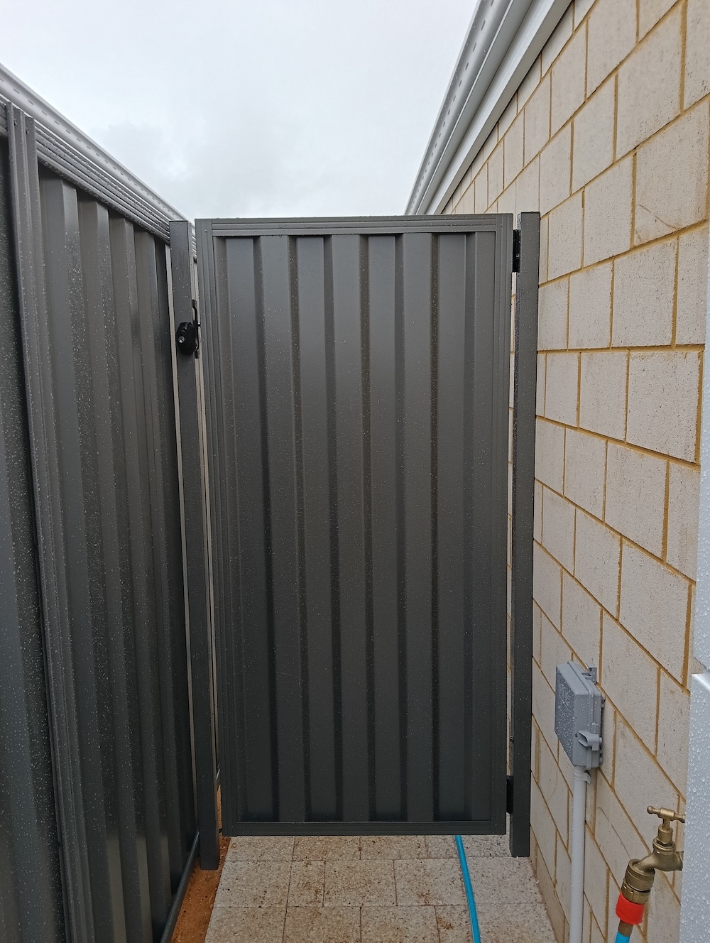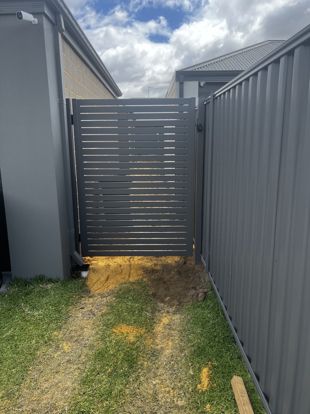 Below are examples of our aluminium slatted gate and Colorbond gate.